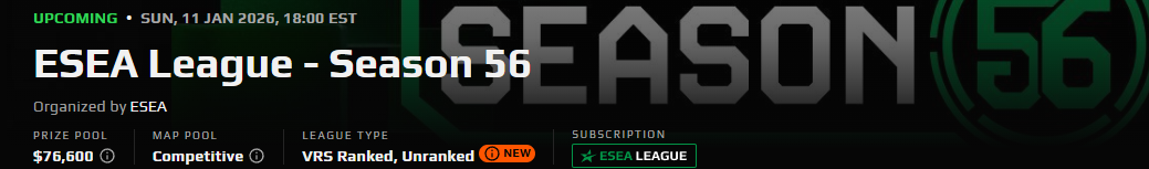 | 11-28 | Rejected | ESEA PLAYOFFS(academy) | 20:30 | LOSS(2-0) |